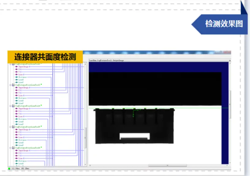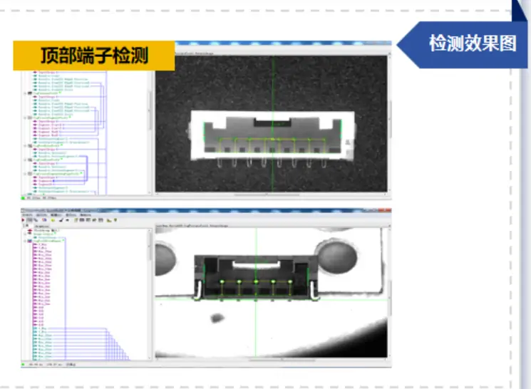 Phương pháp kiểm tra thủ công truyền thống dựa vào mắt thường không chỉ hiệu suất thấp mà còn dễ bỏ sót lỗi. Với 14 năm kinh nghiệm chuyên sâu về thị giác máy, Haizhichen đã xây dựng một giải pháp “kiểm tra toàn diện” cho đầu nối, giúp hoàn tất trong một lần các hạng mục kiểm tra như độ chính xác vị trí, độ đồng phẳng và chiều dài.